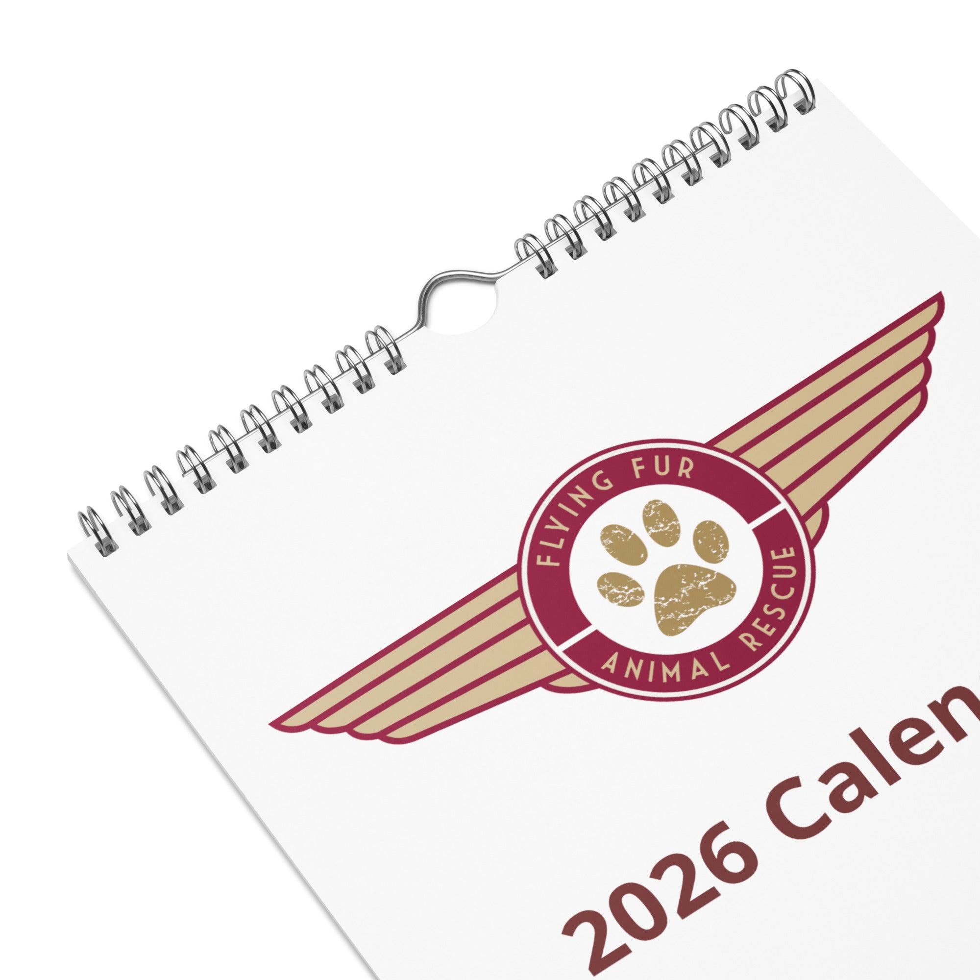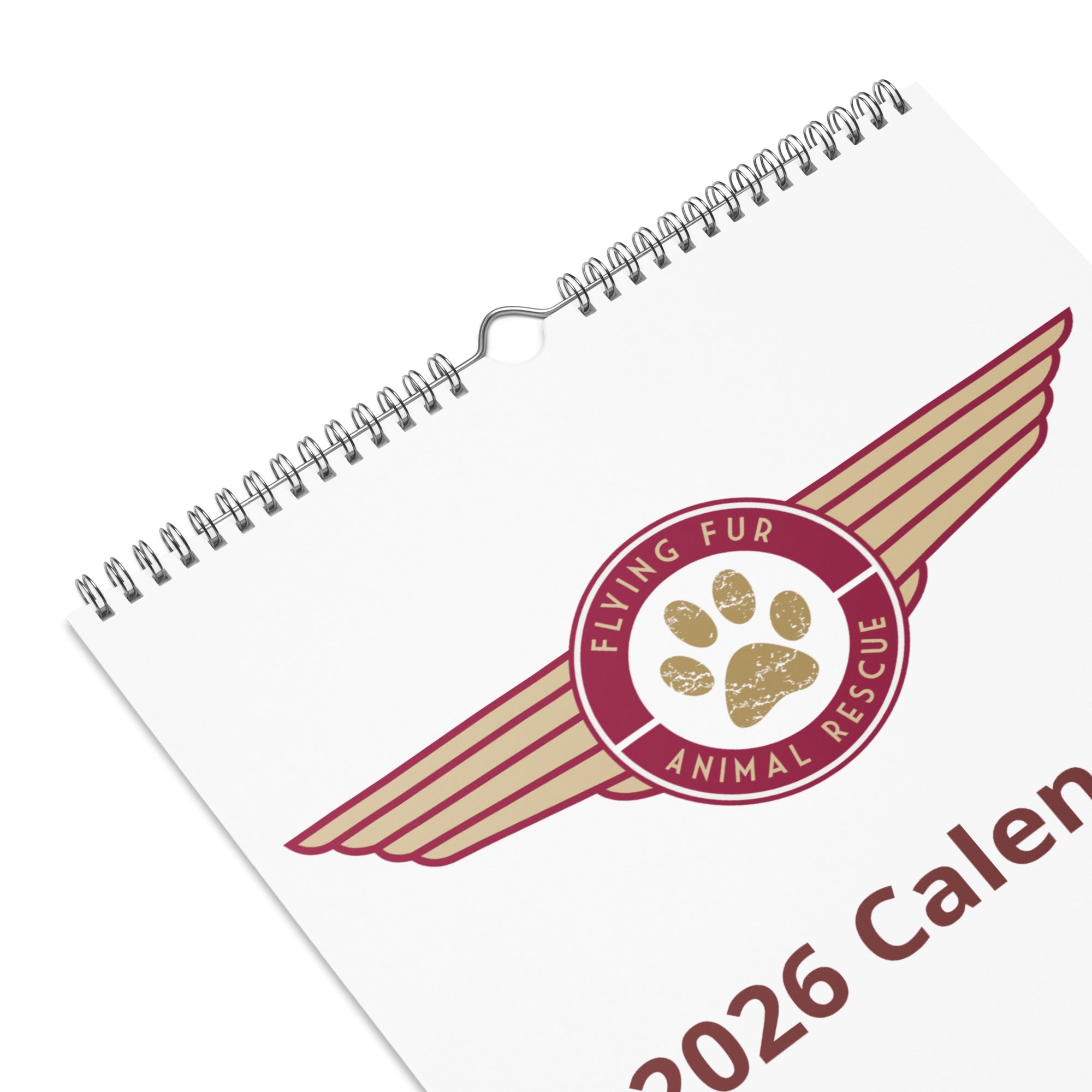 The official 2026 Flying Fur Wall Calendar, featuring rescue animals from each month.